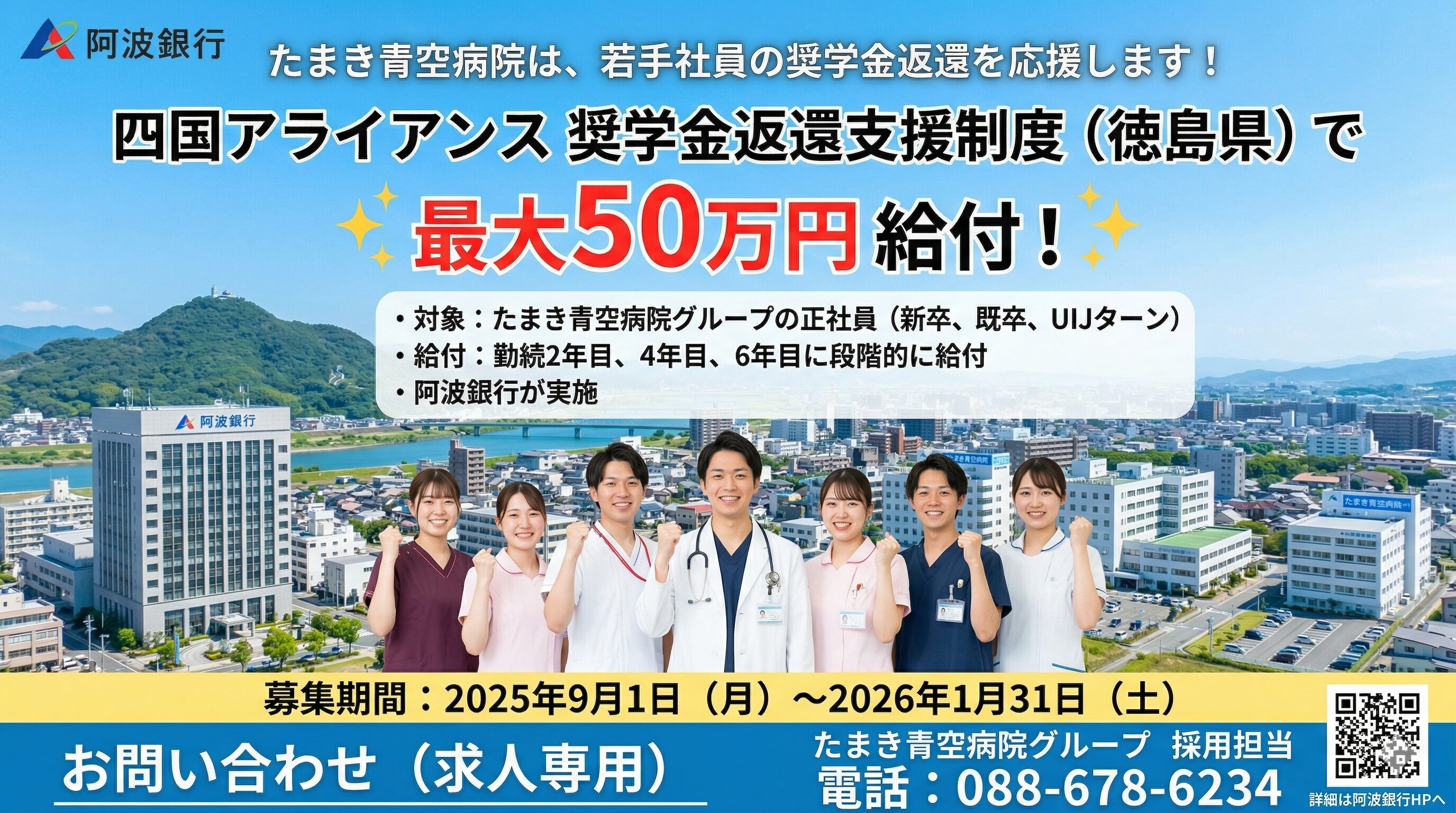 たまき青空病院グループは、阿波銀行など四国アライアンス4行が運営する「奨学金返還支援制度」の賛同企業です 。