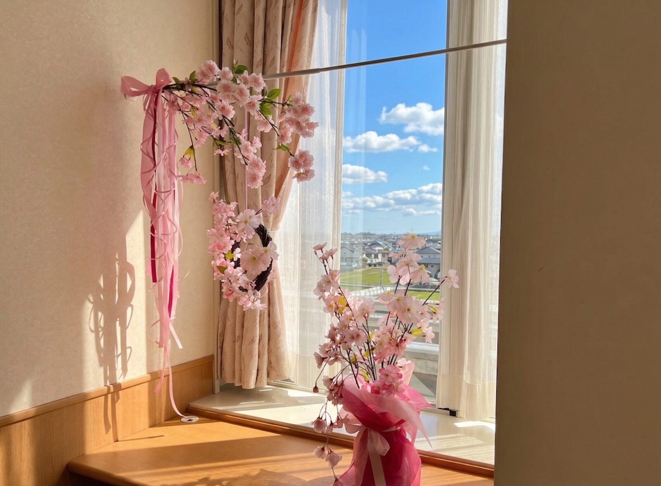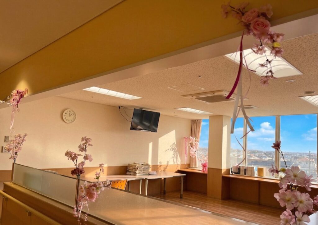 このたび、患者様に季節の移ろいや、よりリラックスできる空間をお届けしたいという思いから、徳島市秋田町の「りょっこう園」様に院内の造花装飾をしていただきました。